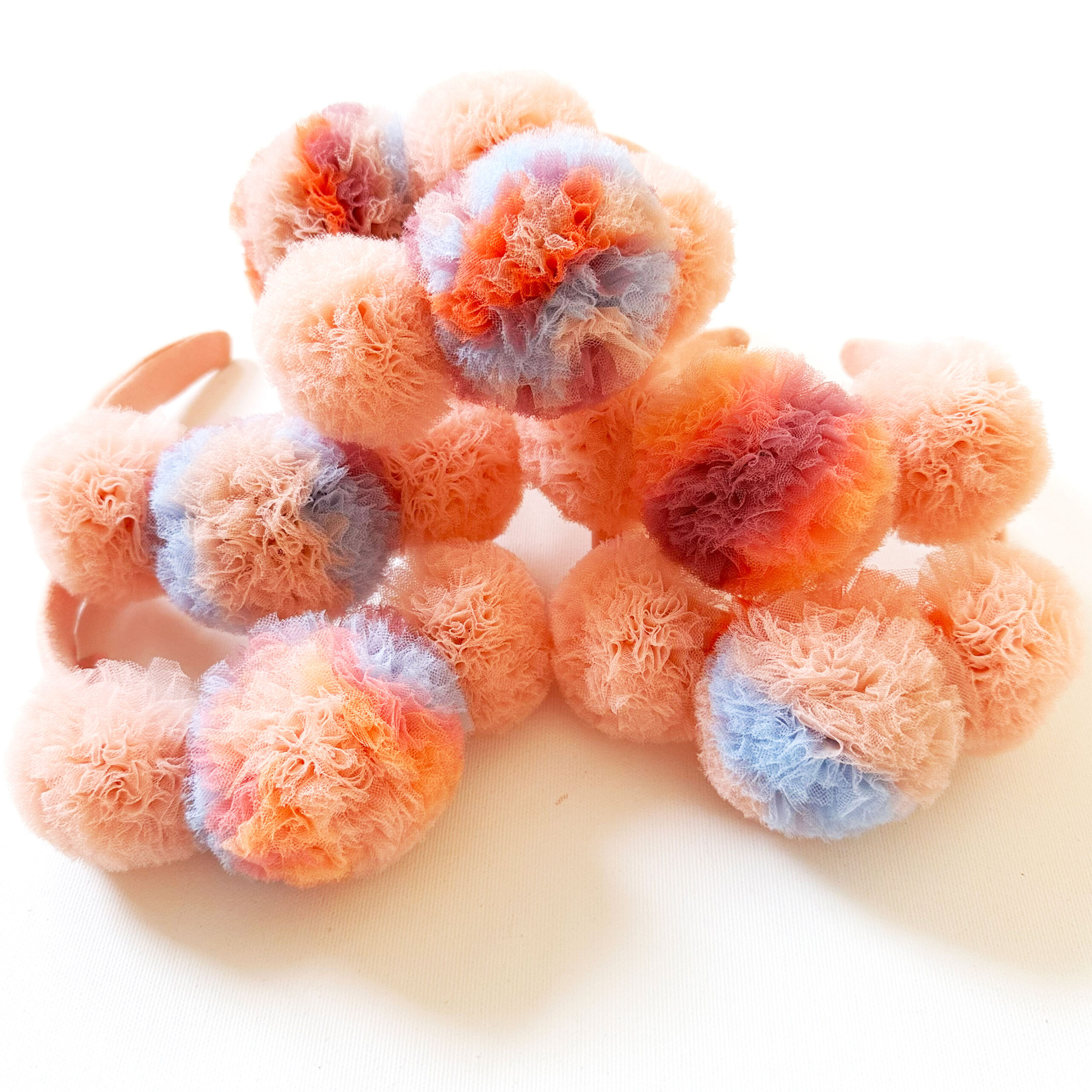 Razigrani rajf inspirisan raskošnim perjem pauna, ukrašen nežnim bućkama od tila u nijansama roze i narandžaste.