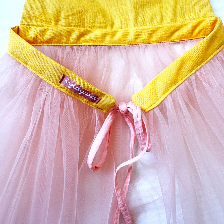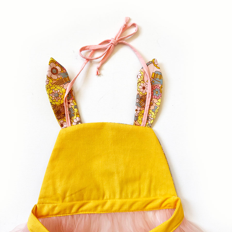Inspirisana igrom i bezbrižnošću detinjstva, kecelja Zeka pretvara svaki trenutak u malu scenu za maštu. Sa ušima koje nežno izviruju iznad šarenog cvetnog dezena i laganim slojem tila koji se širi poput suknjice, ovaj komad je istovremeno i odeća i kostim za igru.