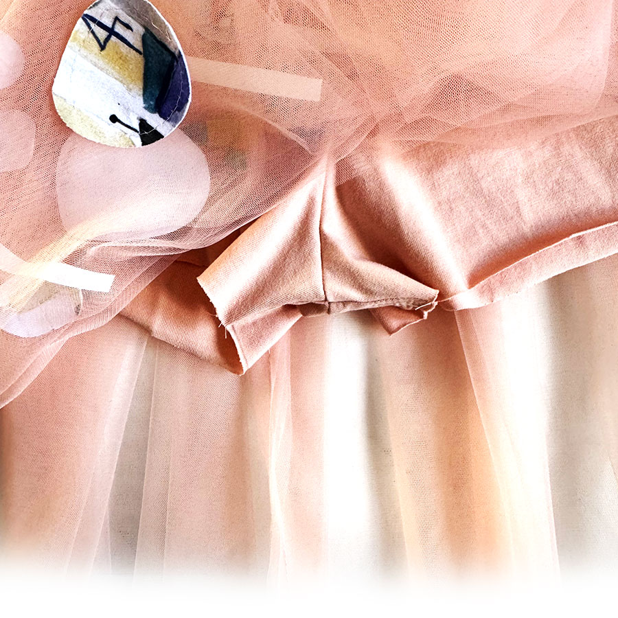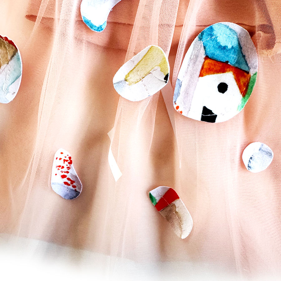 Na prvom sloju tila nalaze se ručno rađene aplikacije, nastale od ostataka materijala koji su dobili novi oblik i novo značenje.