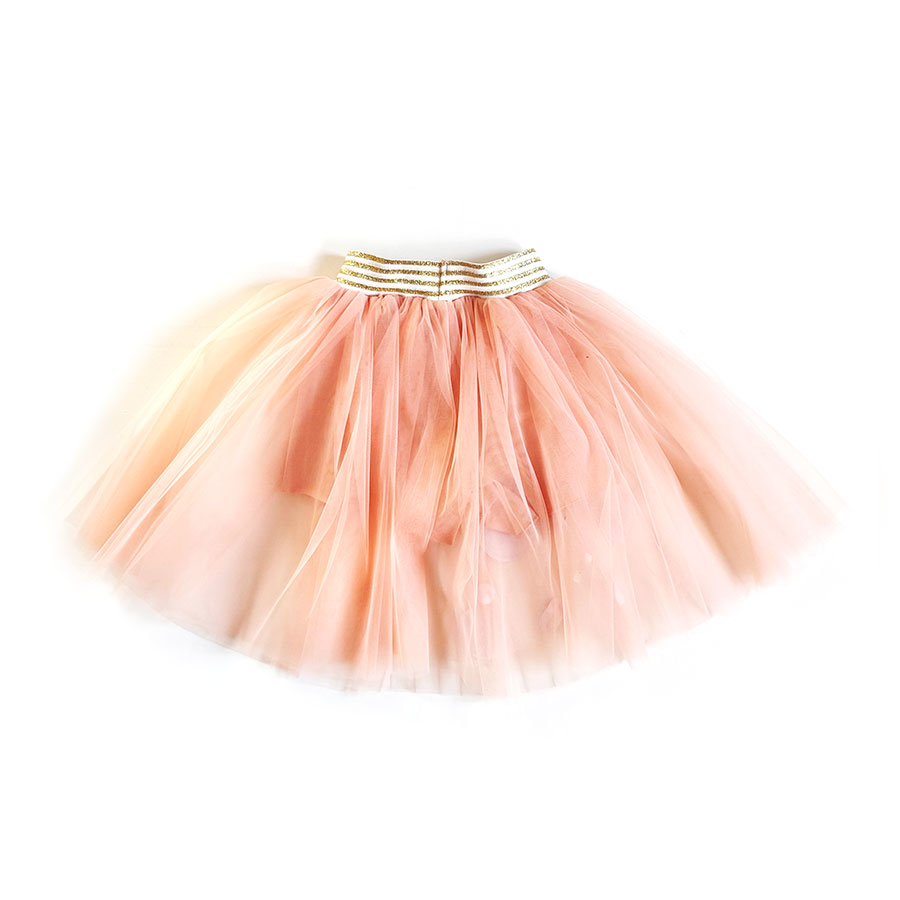 Ispod tila nalazi se pamučni šorc (100% pamuk), koji daje slobodu kretanja i bezbrižnost u igri, dok pojas sa zlatnim prugama nežno drži formu i dodaje svetlost celini.